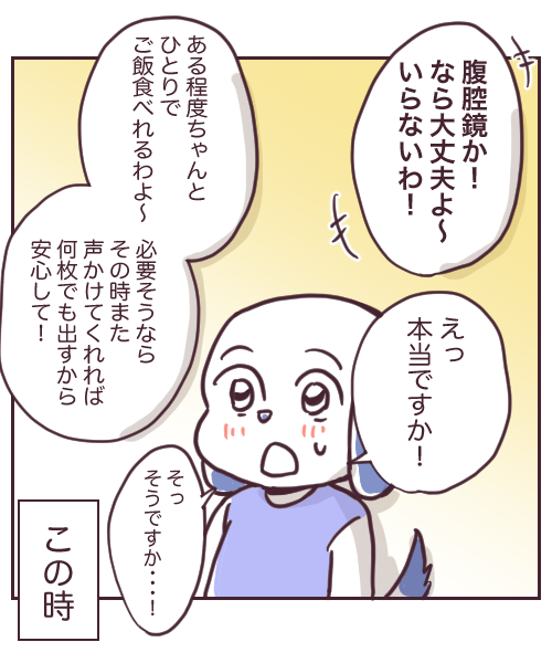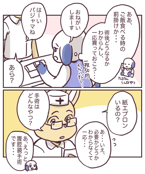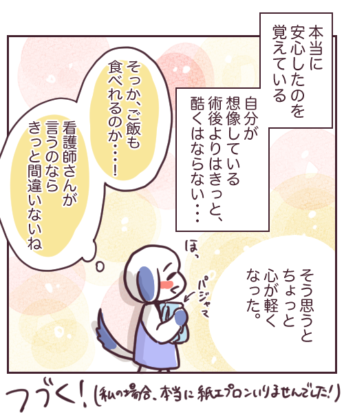 チョコレート嚢腫 2022年09月07日 新婚なのにチョコレート嚢胞になりました26 ↓前回 25話 続きです!本当に紙エプロンはいらなかったよ!(あくまで私の場合だけど・・・)入院するまでに、ネットや知人からたくさん情報を仕入れていたので私はこれから地獄に落ちるんだ・・・ってなってたんですが笑看護師さんのその一言で、なんかそんなにオオゴトでもないのでは??って冷静になれた。病院についてずーと気を張ってたのですが、ちょっとだけほっとした出来事でした。次回、手術説明!↓つづき ↓チョコ嚢シリーズ 最初から読む 🐶ランキングに参加しています!ポチッとお手をお願いします🐶病院着用パジャマ(耐熱スナップボタン) M /7-1144-02ナビス白十字 ワンタッチ腹帯 ホワイト M白十字 スポンサーリンク スポンサーリンク 「チョコレート嚢腫」カテゴリの最新記事 前の記事: 【お知らせ】ムーンカレンダーさんでの連載が始まったよ!あと読者登録数が12人になったの!! 次の記事: 新婚なのにチョコレート嚢胞になりました27 コメント コメントフォーム 名前 コメント 記事の評価 リセット リセット 顔 星 情報を記憶 コメントを投稿する