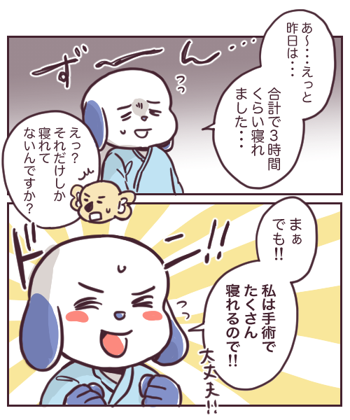 私も入院前はめちゃくちゃ怖くて、何度悪夢を見たことか・・・。
