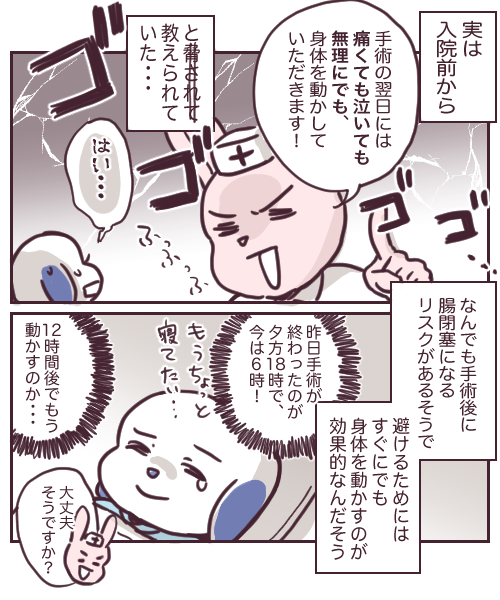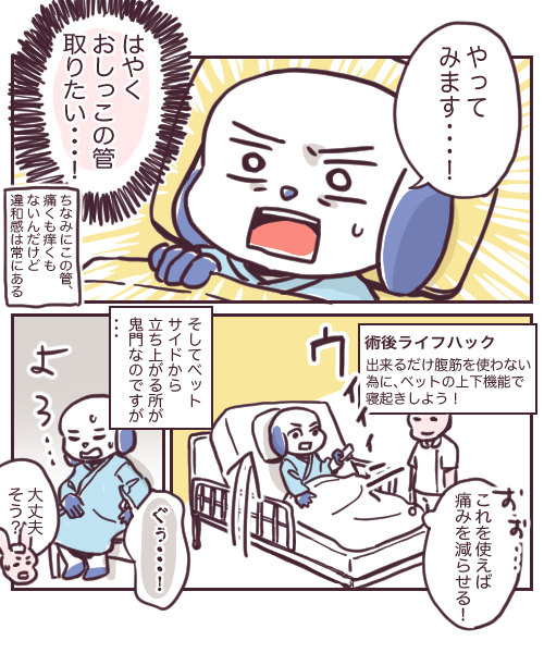 チョコレート嚢腫 2022年10月07日 新婚なのにチョコレート嚢胞になりました43 ↓前回 42話 手術後にすぐ身体を動かす方針は、比較的最近のことみたいです。無理矢理動かすリスクと何もしないリスクなら、動かした方が健康的らしい・・・諸説あると思うけど、私はコアラ先生にもそう言われました。聞くとちょっと前まではそんなことはなかったらしいんですが、今はもう、泣いても騒いでも歩いてねって言われました(震)私の場合は運良くある程度動かせたので次回は痛みのことなんかも描こうと思います!、、↓続き ↓最初から読む 🐶ランキングに参加しています!ポチッとお手をお願いします🐶Apple iPad (第6世代) Wi-Fi 32GB ゴールド (整備済み品)Apple(アップル)Apple Pencil(第2世代)Apple(アップル)2018-11-07 スポンサーリンク スポンサーリンク 「チョコレート嚢腫」カテゴリの最新記事 前の記事: 新婚なのにチョコレート嚢胞になりました42 次の記事: ゴリさんのマウスピース コメント ぽよ |2022年10月09日 02:30 絵柄に惹かれて、インスタから一気読みしちゃいました!お話がおもしろいところも好きです。イヌちゃんがんばれ〜😭🐶 イヌ |2022年10月09日 18:11 >>1 あああ!!めっちゃ嬉しい!! わざわざコメントまでありがとうございます😭🙇♀️ これからも頑張るよ〜🐶 コメントフォーム 名前 コメント 記事の評価 リセット リセット 顔 星 情報を記憶 コメントを投稿する