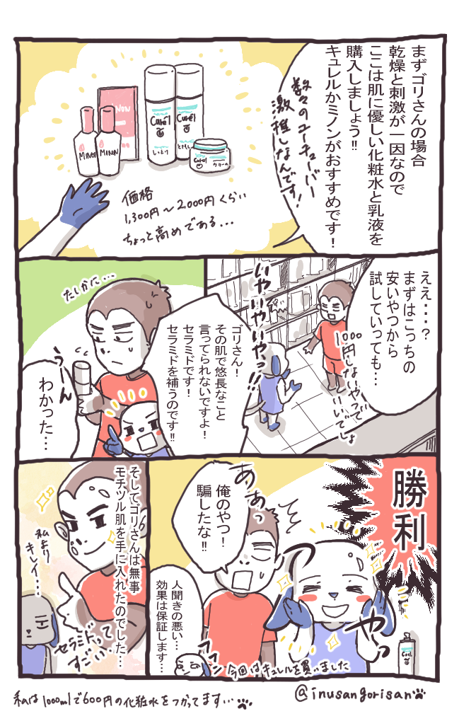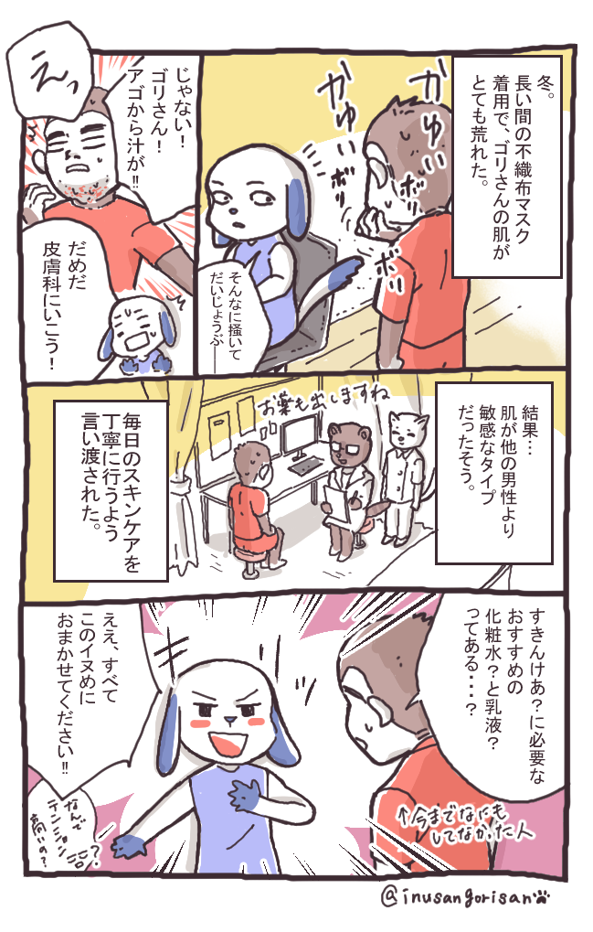 今までなにもしなかったゴリさんが、ついにスキンケアデビューです。